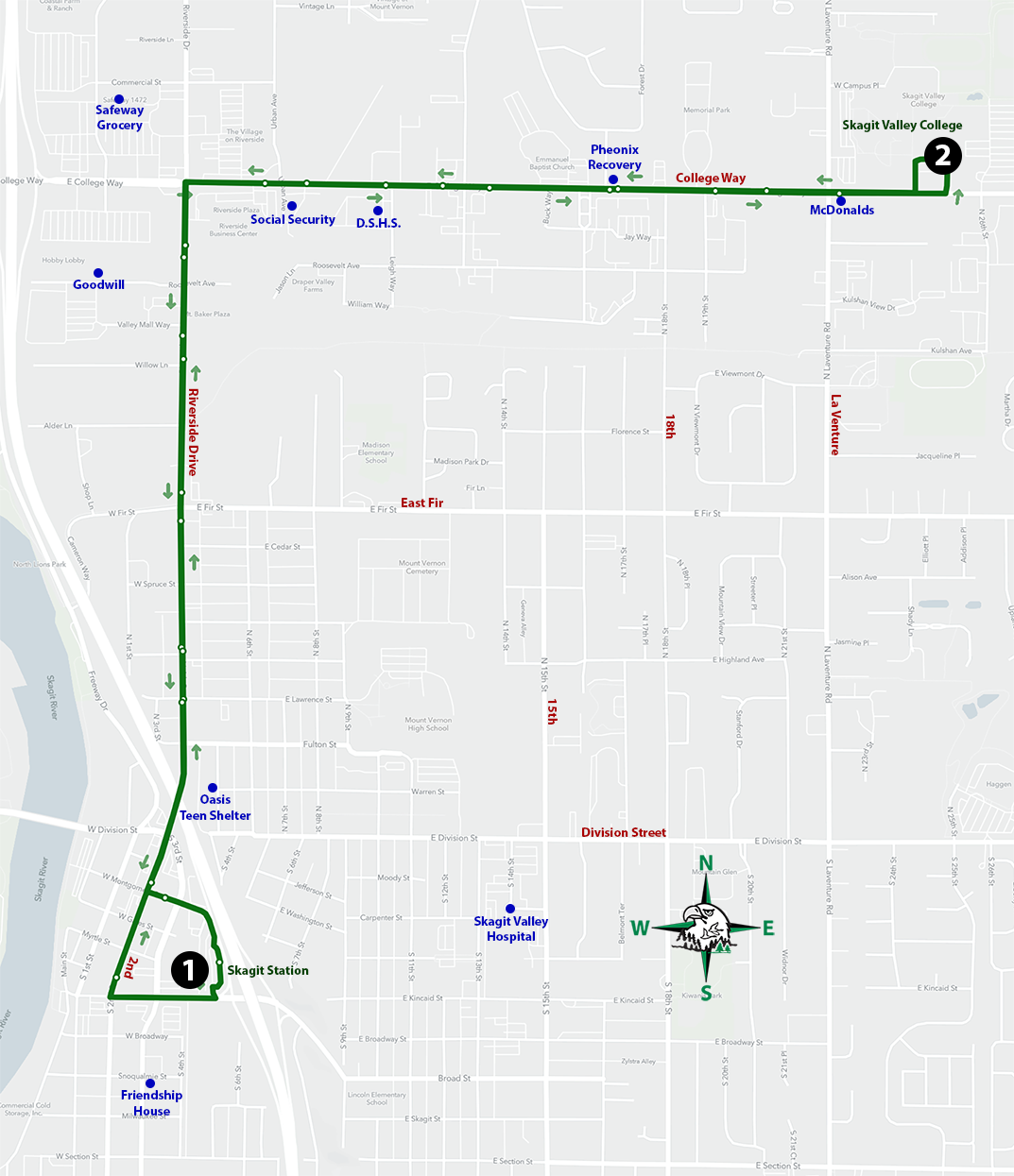Skagit Station / Skagit Valley College via Riverside Drive and College Way